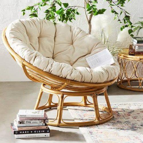 Kursi papasan ini memiliki bentuk yang sangat unik seperti setengah bulat yang terbuat dari rotan dengan dilengkapi sofa di atasnya yang membuat Anda semakin merasa nyaman.
