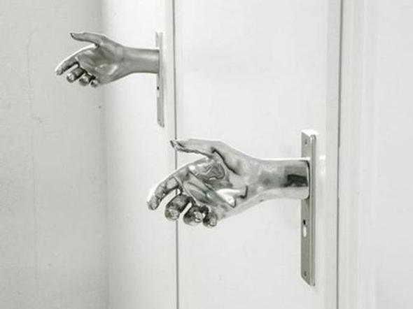 Model gagang pintu yang ketiga ada gagang pintu dengan bentuk tangan manusia. Tampilannya yang satu ini sangat unik dan modern.