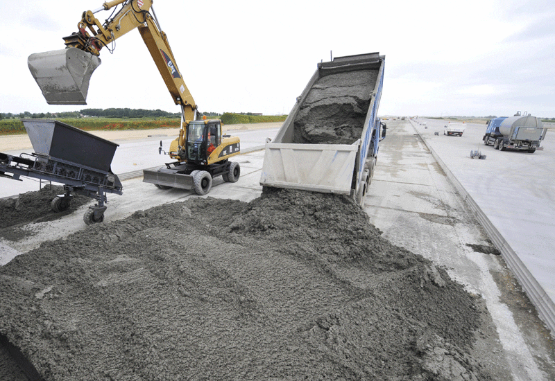 Sedangkan beton adalah campuran semen, pasir atau agregat halus lainnya. Ditambah dengan agregat kasar yang berukuran hingga 19 hingga 25 mm (3/4 hingga 1 inci). Namun, ukuran agregat kasar juga dapat mencapai 150 mm (6 inci). Ketika beton dipergunakan dalam jumlah yang besar seperti dalam pembuatan bendungan.