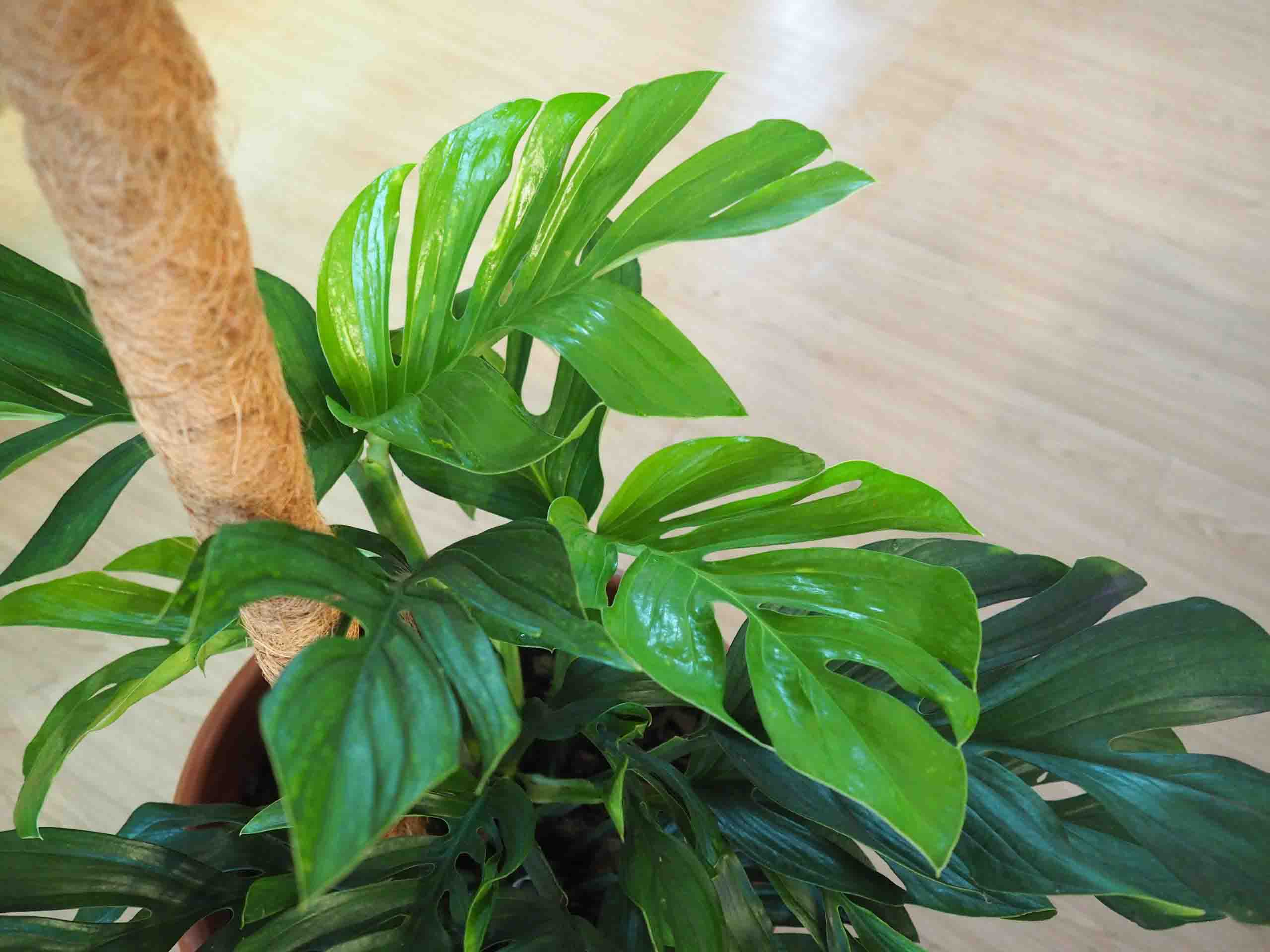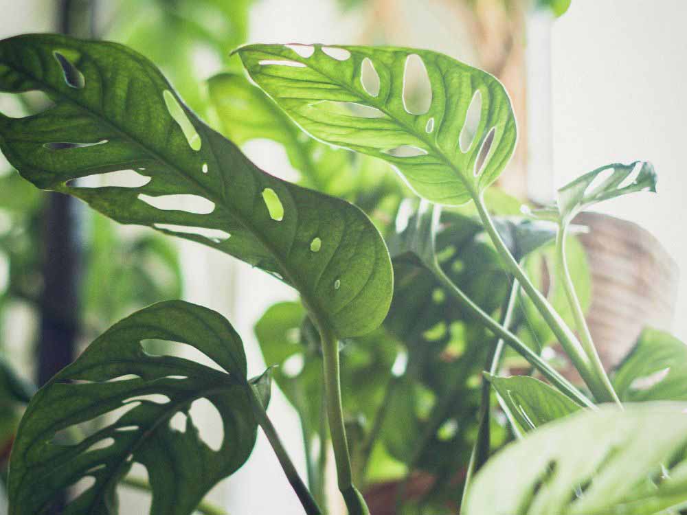 Monstera Deliciosa memiliki daun berlubang besar dan cantik yang sangat populer dan cocok disimpan di rumah Anda.