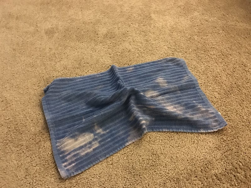 Gunakan handuk lain untuk menghilangkan larutan tersebut dan biarkan mengering. Ulangi sampai karpet benar-benar bersih dan baunya menghilang.