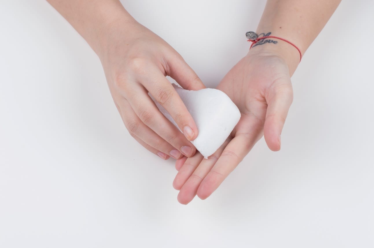 Ambil handuk tipis bersih atau tisu, gunakan spons untuk menggosokkan alkohol ke daerah sekitar tinta, lalu oleskan tisu tadi untuk menyerap tinta.