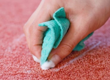 Bersihkan dengan lap bersih dan lembab untuk mengangkat noda dari karpet. Atau lebih baik lagi, gunakan setrika untuk membantu mengangkat noda yang masih tersisa.