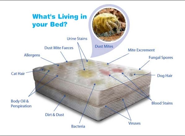 Masalah lain adalah tungau yang bisa berkembangbiak dan hidup didalam matras anda. Ini adalah masalah besar karena tungau bisa berkembangbiak dengan sangat cepat dan membuat gatal yang luarbiasa parah. Belum lagi proses pengobatan dan pembersihannya yang memakan waktu, tenaga dan biaya.