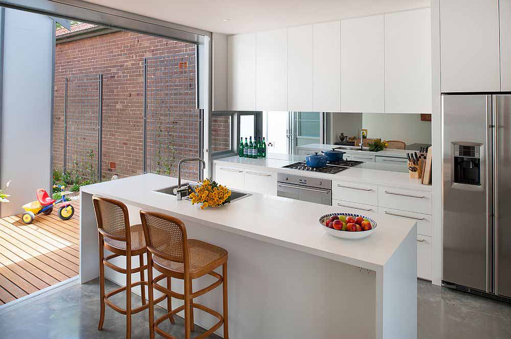 Desain yang keempat yaitu ada kitchen set dengan model terbuka. Mungkin beberapa dari Anda berpikiran bahwa model kitchen set yang terbuka ini membuat dapur sama saja tidak terlihat rapi. Namun nyatanya kitchen set terbuka pun tetap bisa membuat dapur Anda terlihat rapi.