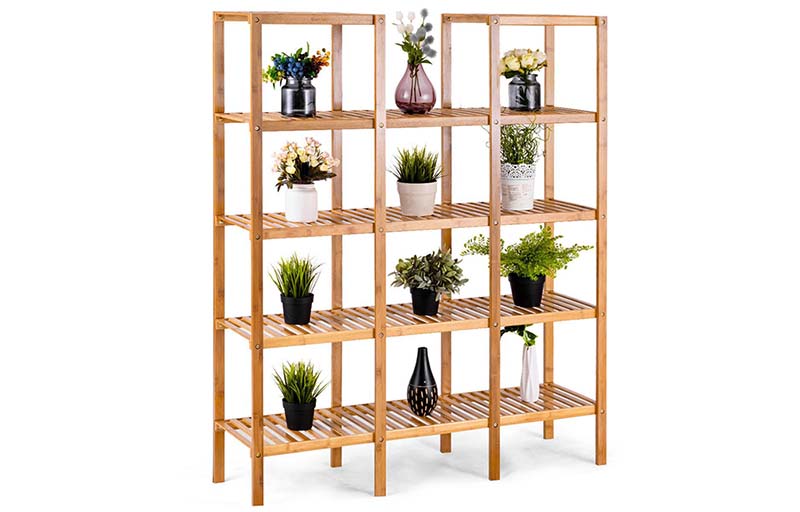Jika Anda saat ini lagi cari-cari ide rak pajangan ataupun storage yang paling ideal, pakai saja rak dari bahan tanaman bambu. Rak dengan jenis ini pas banget jika digunakan untuk berbagai keperluan, mulai dari kamar tidur, ruang tamu, dapur, sampai kamar mandi.