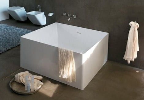 Model melingkar atau oval memang sudah biasa dan terlalu mainstream. Sebaliknya, Anda bisa memilih bentuk lain yakni persegi untuk mempermanis tampilan kamar mandi Anda. Anda bisa memasangnya di tempat yang berundak seperti ini. Model bathtub satu ini juga cocok untuk kamar mandi bernuansa mewah namun tetap mengedepankan sisi minimalis di dalamnya.