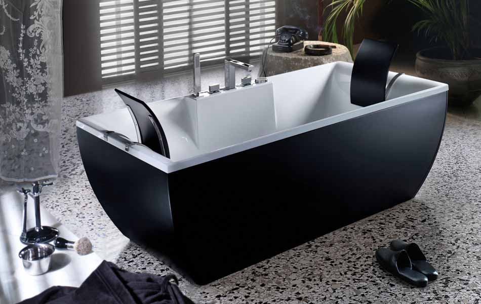 Model bathtub satu ini sangat unik karena memiliki dua warna khas minimalis yakni hitam dan putih. Warna tersebut cocok untuk menambah kesan mewah sekaligus elegan pada kamar mandi Anda. Anda bisa memasang lantau serta plafon kamar mandi dengan warna putih untuk tampilan kamar mandi yang makin menawan.