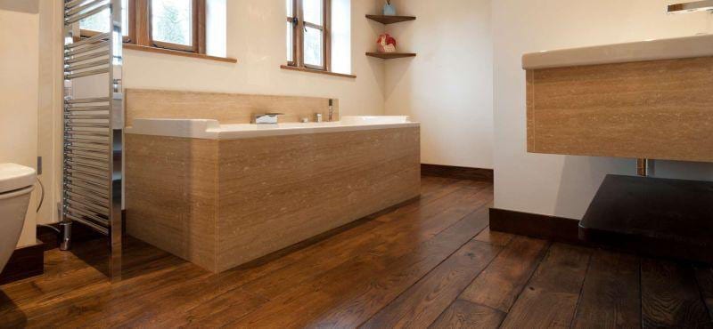 Material bathtub dari kayu bisa Anda pasang pada kamar mandi untuk mempermanis desainnya. Lantai kayu ini juga berfungsi sebagai penyerap air sehingga kamar mandi tidak gampang licin. Anda bisa memasang bathtub dekat dengan pintu atau jendela agar ketika mandi Anda bisa merasakan sensasi alam yang begitu lekat.