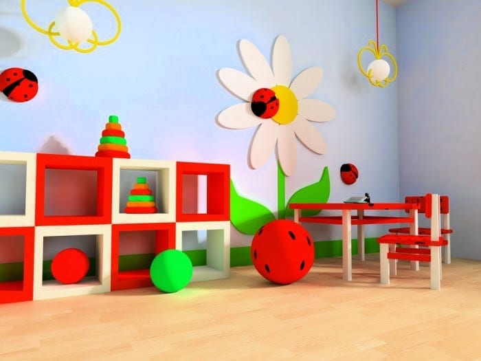 Hal ini membuat anda tidak perlu bingung lagi dalam menata ruang khusus anak ini. yang terpenting adalah pemilihan warna cat dinding, lantai dan dekorasinya yang lekat dengan unsur ceria. Warna-warna seperti kuning, oranye, merah, hijau, dan warna cerah lainnya menjadi ciri khas ruang bermain anak ini.
