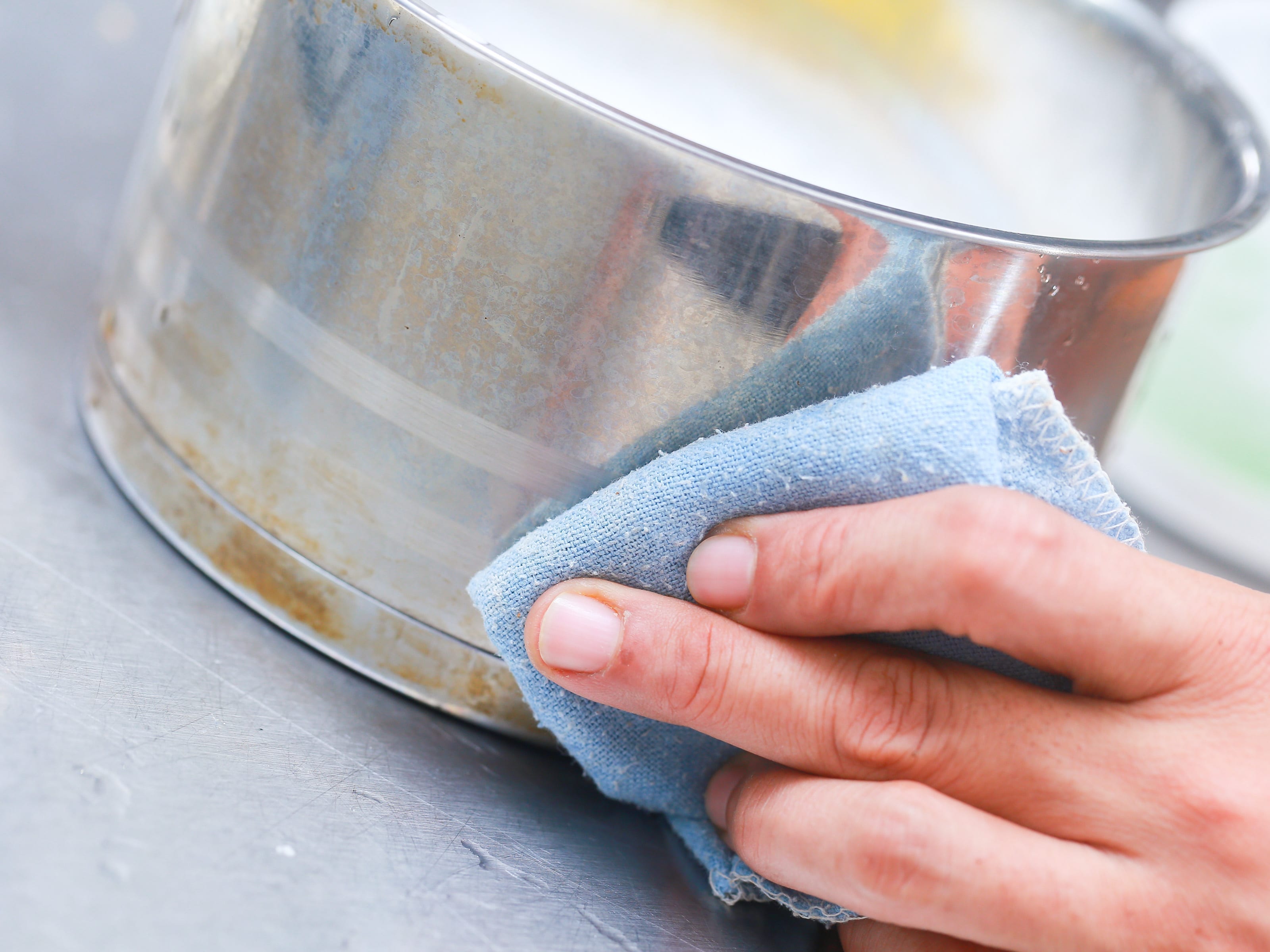 Dengan membersihkannya menggunakan kain lembut dan menggosok dengan perlahan menggunakan gerakan melingkar, maka secara bertahap Anda akan membuat peralatan alumunium jadi bersih kembali.