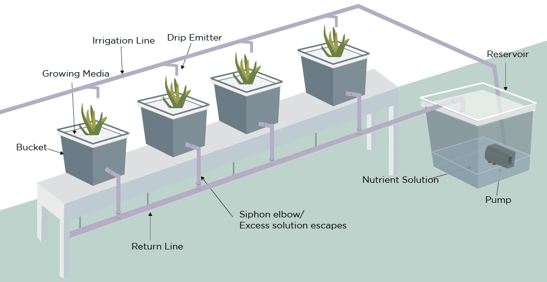Setup bekerja dengan menggunakan media tanam untuk membuat aksi kapiler, yang memindahkan nutrisi ke akar tanaman.