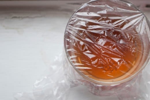 Tidak perlu anggur mahal, versi murah juga akan berfungsi. Tuangkan anggur ke dalam wadah kecil. Bungkus bagian atas wadah dengan bungkus plastik lalu tempelkan beberapa lubang di dalamnya. Simpan dekat lalat buah dan serangga dalam semalam dan biarkan keajaiban terjadi.