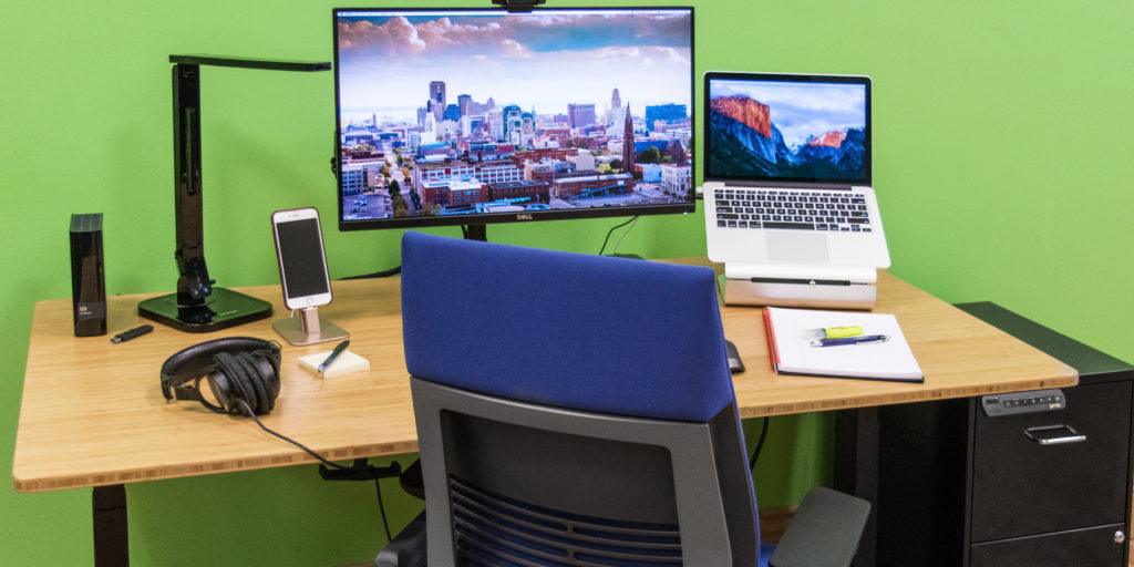 Beberapa benda membuat ruang terlihat lebih berantakan karena kabel mereka yang kusut di lantai. Mengontrol kekacauan kabel di meja seperti ini dengan mengebor beberapa lubang yang ditempatkan dengan baik.