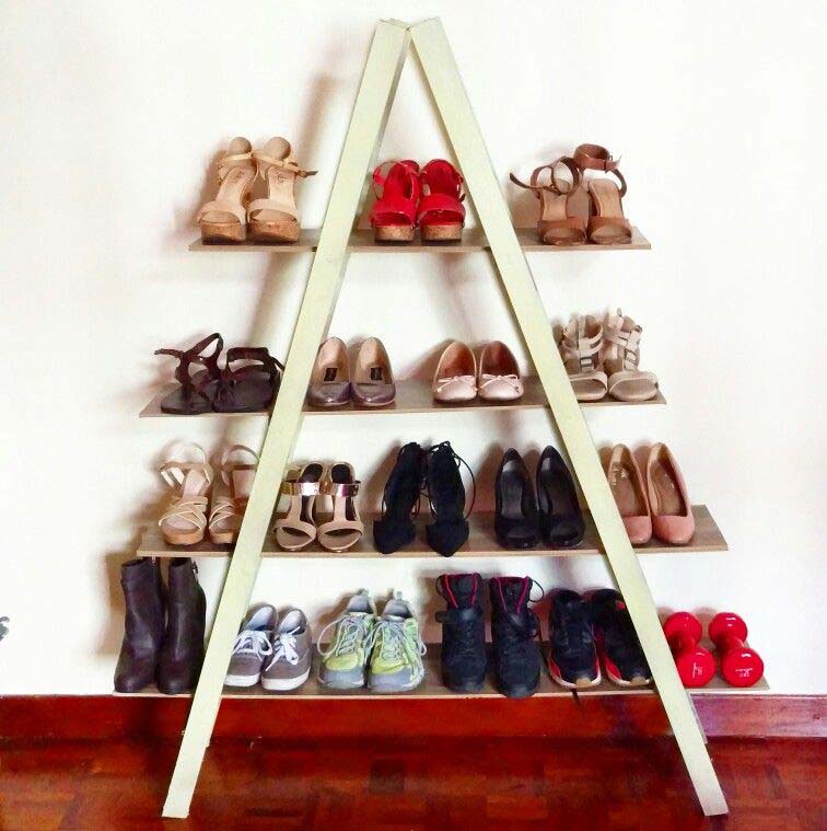 Pilihlah ukuran rak sepatu berbentuk segitiga ini sesuai dengan banyaknya koleksi sepatu Anda supaya sepatu tidak akan bertumpuk.