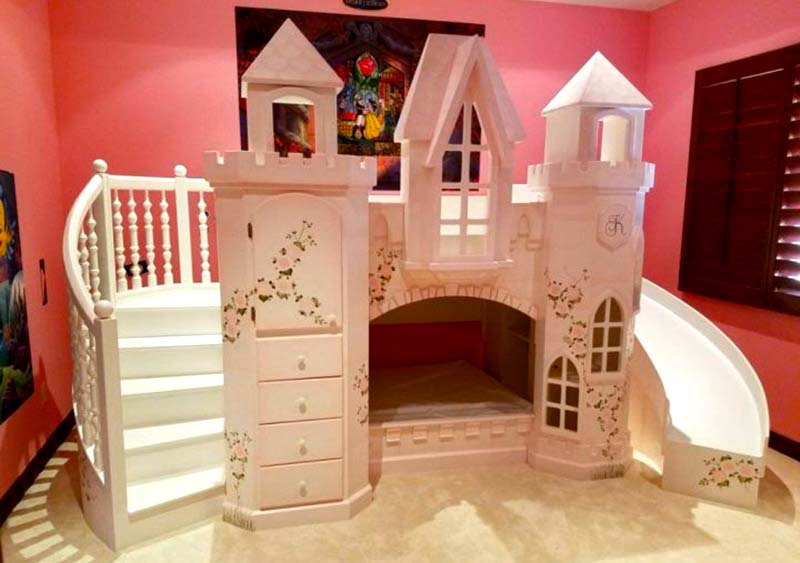 Bisa dipastikan bahwa si kecil akan sering bermain rumah – rumahan didalam kamar. Agar kesannya lebih terasa nyata, Anda bisa coba gunakan ranjang tingkat ala rumah – rumahan, kemudian lengkapi bagian atasnya dengan atap dan jendela.