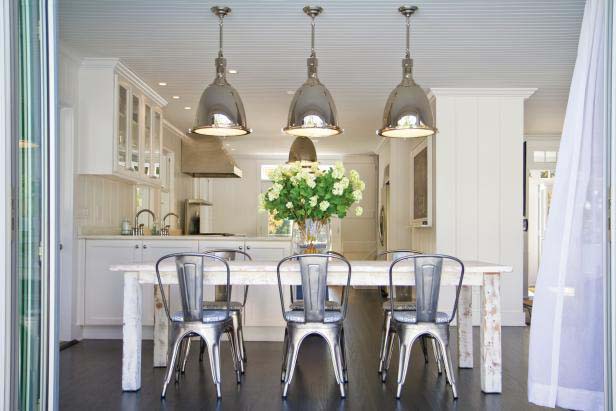 Buat ruang makan Anda terlihat lebih modern dengan pencahayaan bergaya industri atau kalau anda menyukai gaya coffee shop yang menggunakan cahaya minim namun tetap terlihat bagus, Anda bisa mengganti lampu Anda dengan nyala yang lebih temaram.