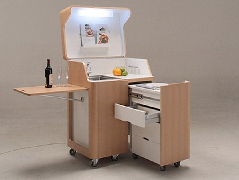 Penggunaan meja multifungsi di dapur dapat bermanfaat dalam menghemat penggunaan ruang. Meja tersebut biasanya merupakan paket dari tempat pencucian piring, meja memasak, sekaligus meja untuk makan.
