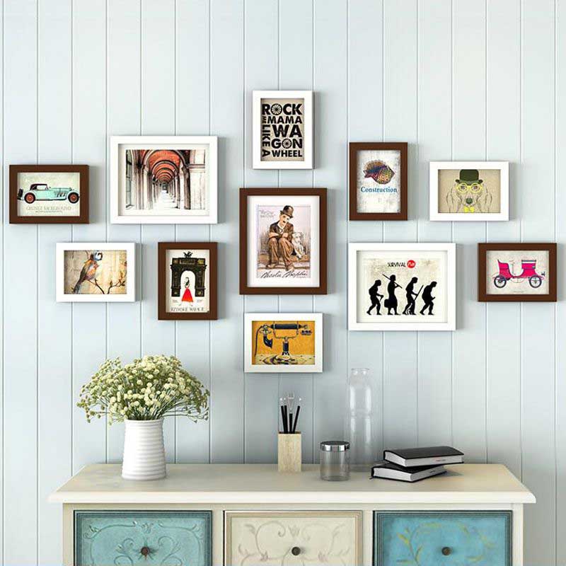 Anda bisa menggantung lukisan, menghiasinya dengan wallpaper gambar, ataupun mengisi dinding yang kosong dengan berbagai foto yang dipajang menggunakan bingkai.