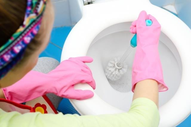 Sebelum memulai pembersihan toilet, Anda diharuskan untuk selalu mengenakan sepasang sarung tangan. Sarung tangan pembersih berbahan karet akan bekerja dengan baik dan dapat melindungi Anda dari kotoran yang berbahaya.
